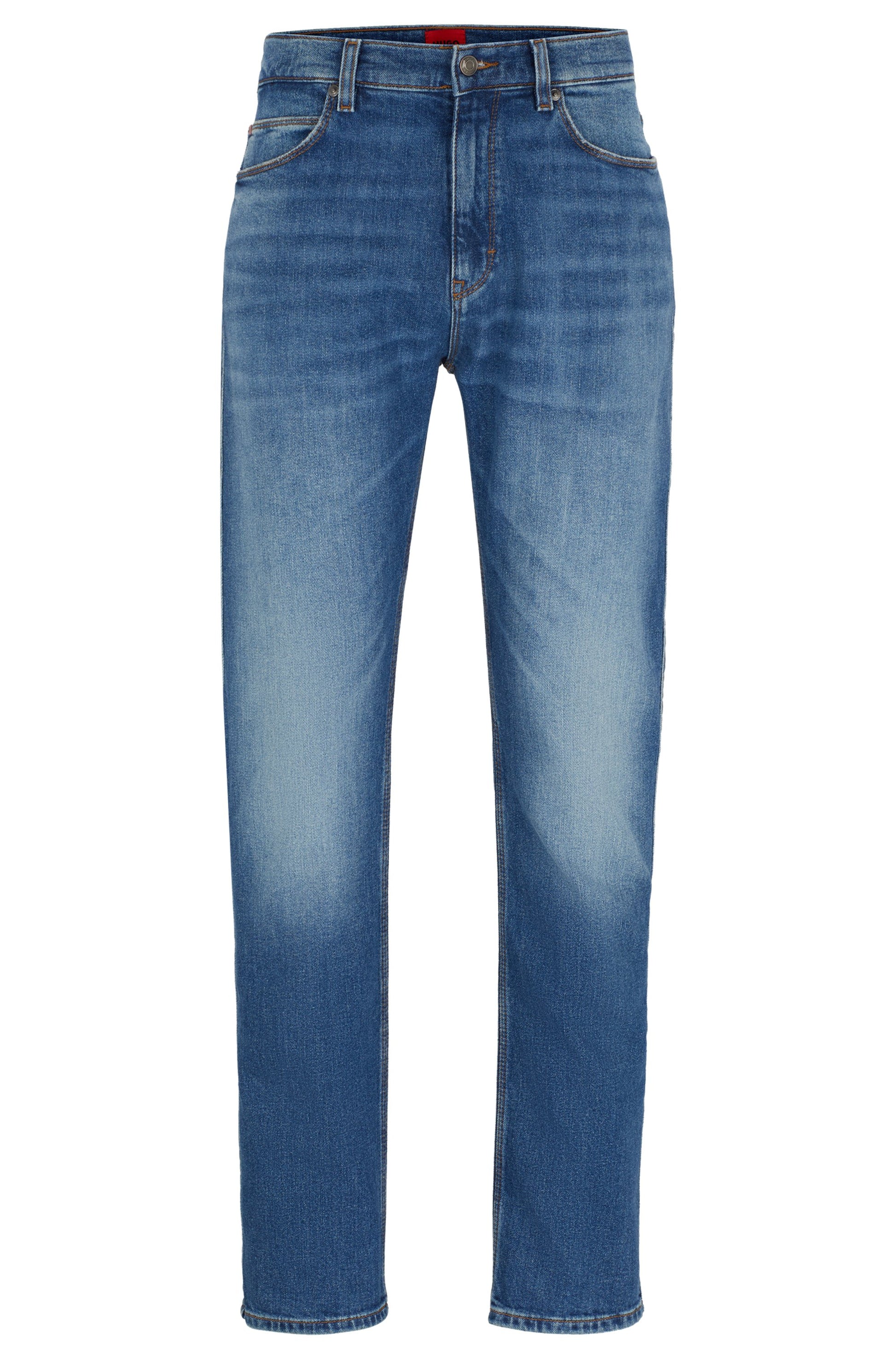 Die HUGO Jeans im Slim Fit sind ideal für den modernen Look. Sie präsentieren sich in einem klassischen, mittelblauen Denim mit leichter Waschung. Die schmale Passform sorgt für eine stilvolle Silhouette. Perfekt für lässige und schicke Outfits, passen sie zu jedem Anlass.